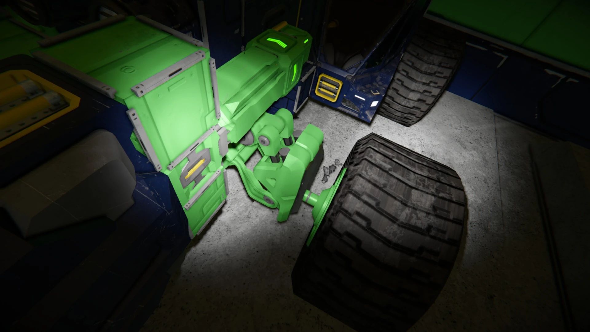 Tip: When you press and hold 'X' in the cockpit of a wheeled vehicle, the suspensions compress, which can be useful to connect to a low connector or to get through a low entrance. When you then release 'X', the suspensions relax, and the vehicle jumps, which can be useful to get a vehicle unstuck from uneven ground.