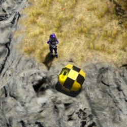 | Some cargo drops also have thrusters, gyroscopes, and sensors. Their passive defensive abilities include the programming to run away from players. You will need to hunt these cargo drops down and disable them before you can interact with them -- and before they accidentally destroy themselves by crashing into things. |